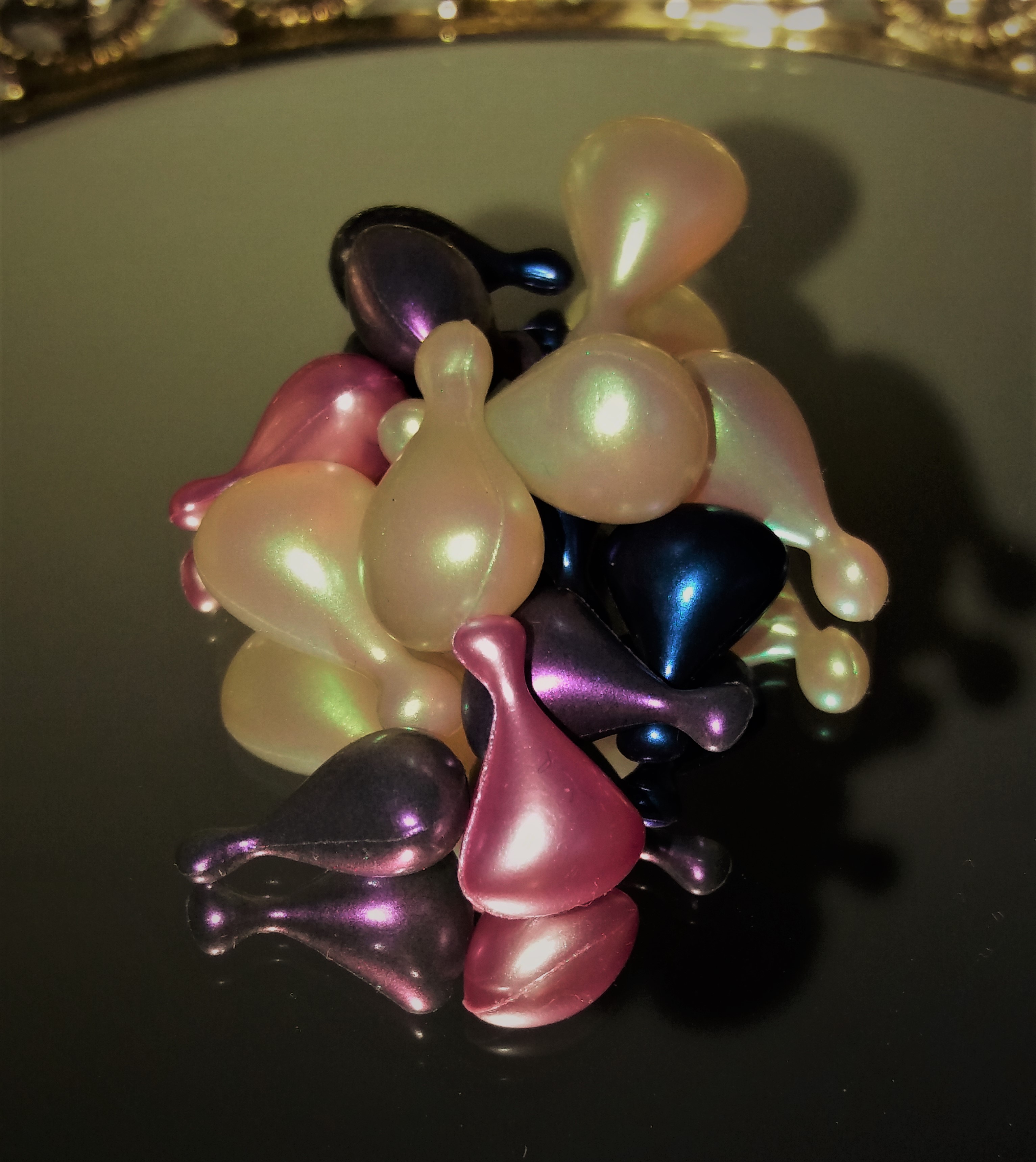 On their website they describe the capsules as feeling like plump blueberries, and I found this to be a pretty accurate description, some are softer than others, but not by much at all. To use them, all you do is nip and twist the thin part of the capsule and squeeze out the contents and apply.