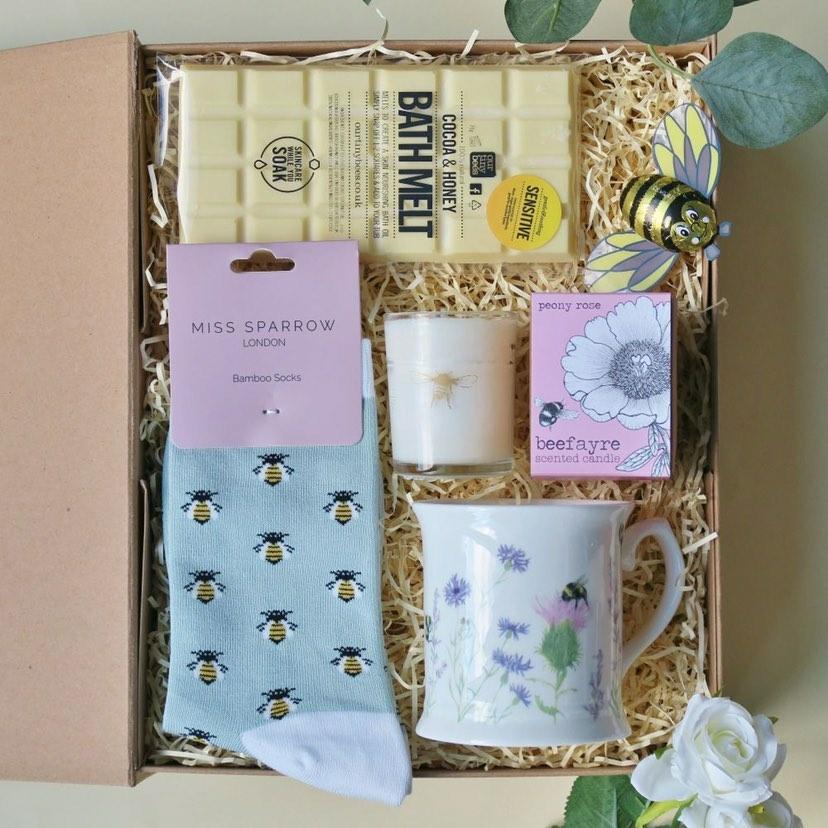 We stock a range of gifts, homeware and natural skincare inspired by bees. Our most popular products are candles, mugs, jewellery, stationery, and our monthly subscription box which features 4-5 bee themed items each month.