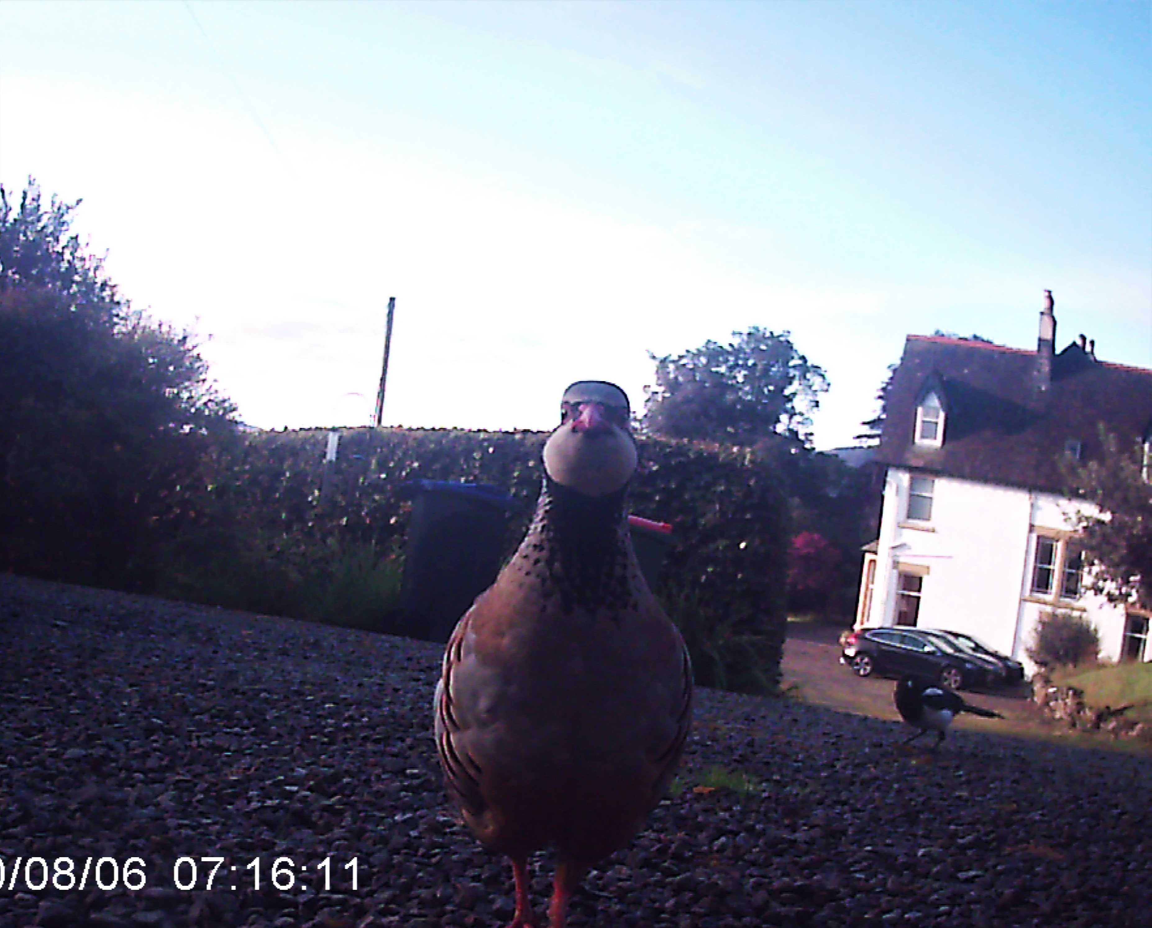 So at around 11pm, before bedtime, we I set up my camera trap, ready to attach to the leg of one of the outdoor dining chairs, and a bag of peanuts and Sunflower hearts. After attaching the camera to the chair I carried it over to a corner of the open drive, which I thought would have best viewing potential of anything that made it’s way up to the cottage. I looked down to scatter the seed when my Dad suddenly told me to look up. And OH MY GOODNESS!!