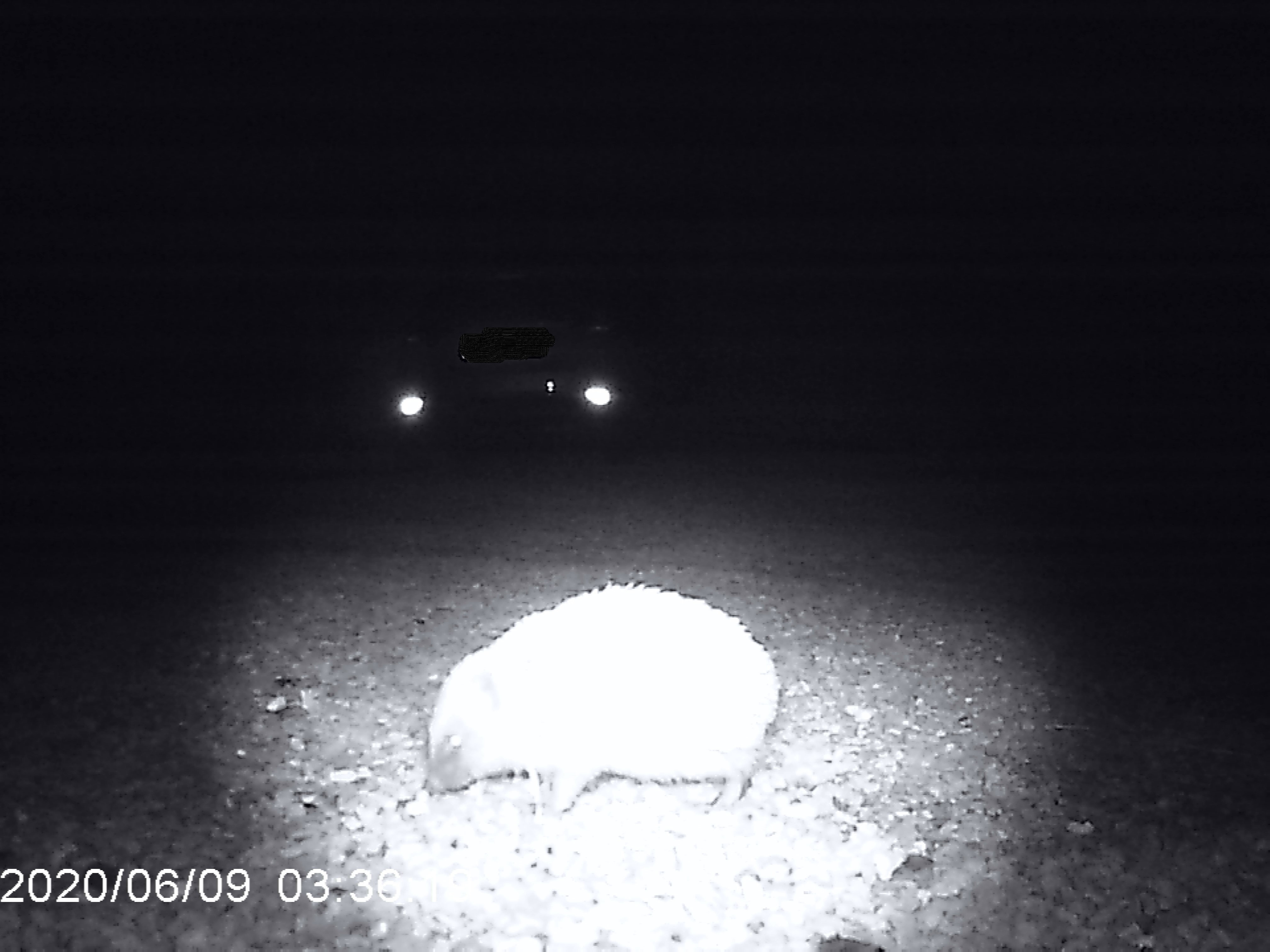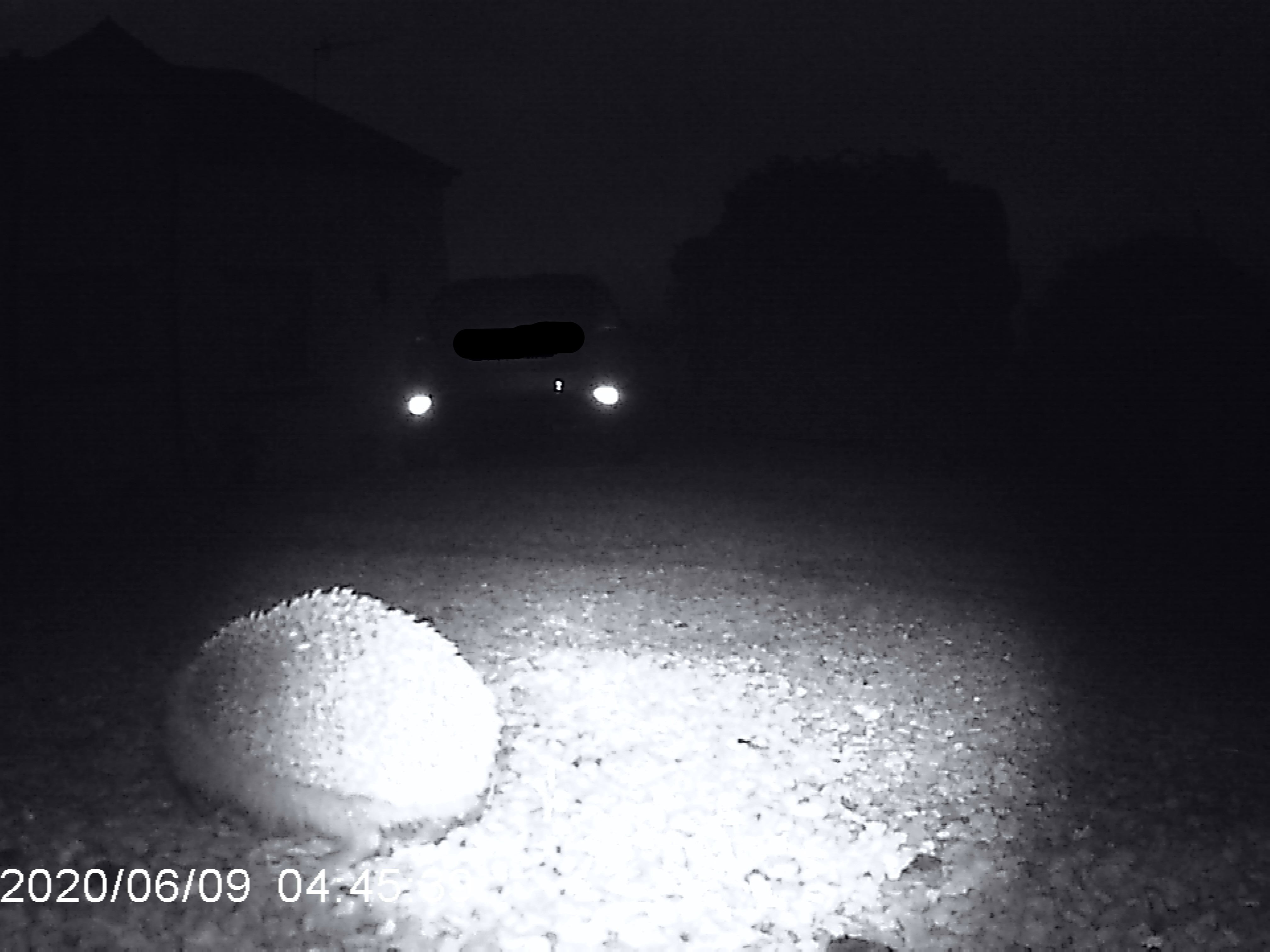 The light you can see is infrared, so it is pitch black to the hedgehog – it causes no disturbance to them.
