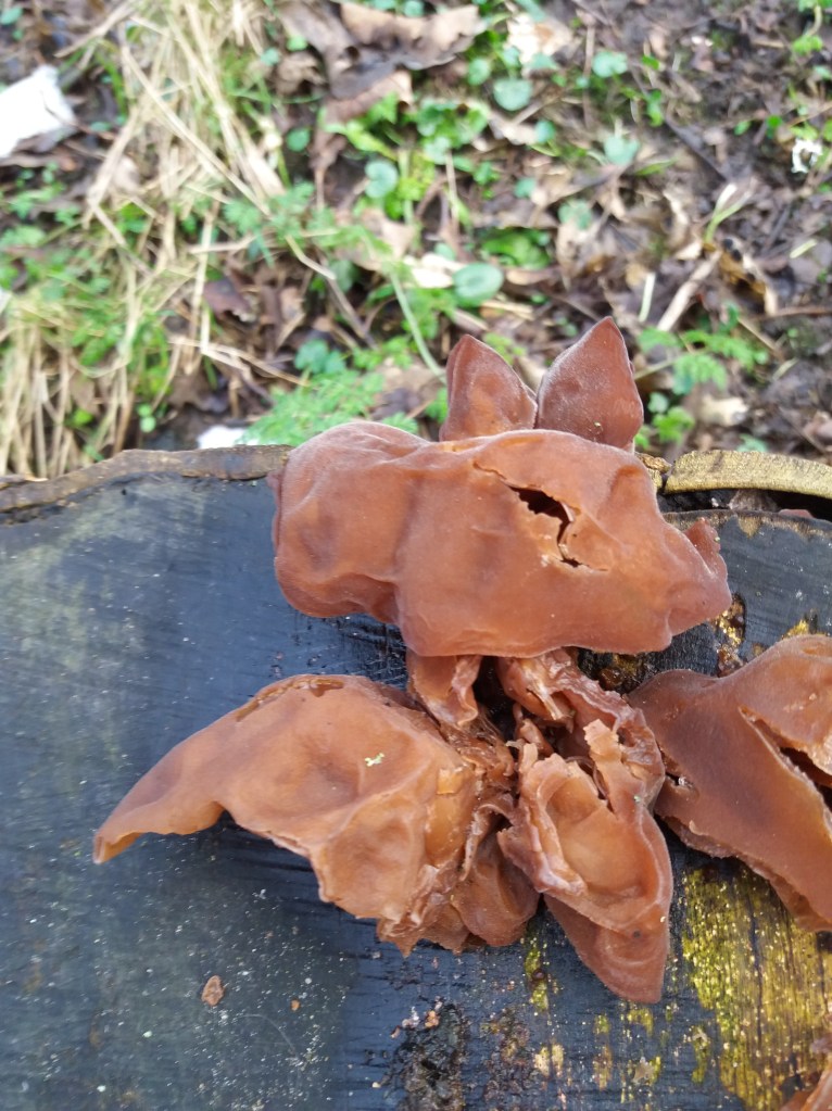 Crossing the road, to continue the walk down the lane, there were yet more signs of spring; Collared Doves pairing up, Blackbirds singing and chasing each other about and swathes more of Snowdrops and a few swollen buds of Daffodils for good measure. It was so good to get outside and escape the 4 walls for a bit. We then reached an old felled tree trunk which had been overtaken with Jelly Ear Fungus. This of course led to the compulsory video taken of making them wobble – it is so satisfying – if you see any, I encourage you to give it a go for some nature themed entertainment!