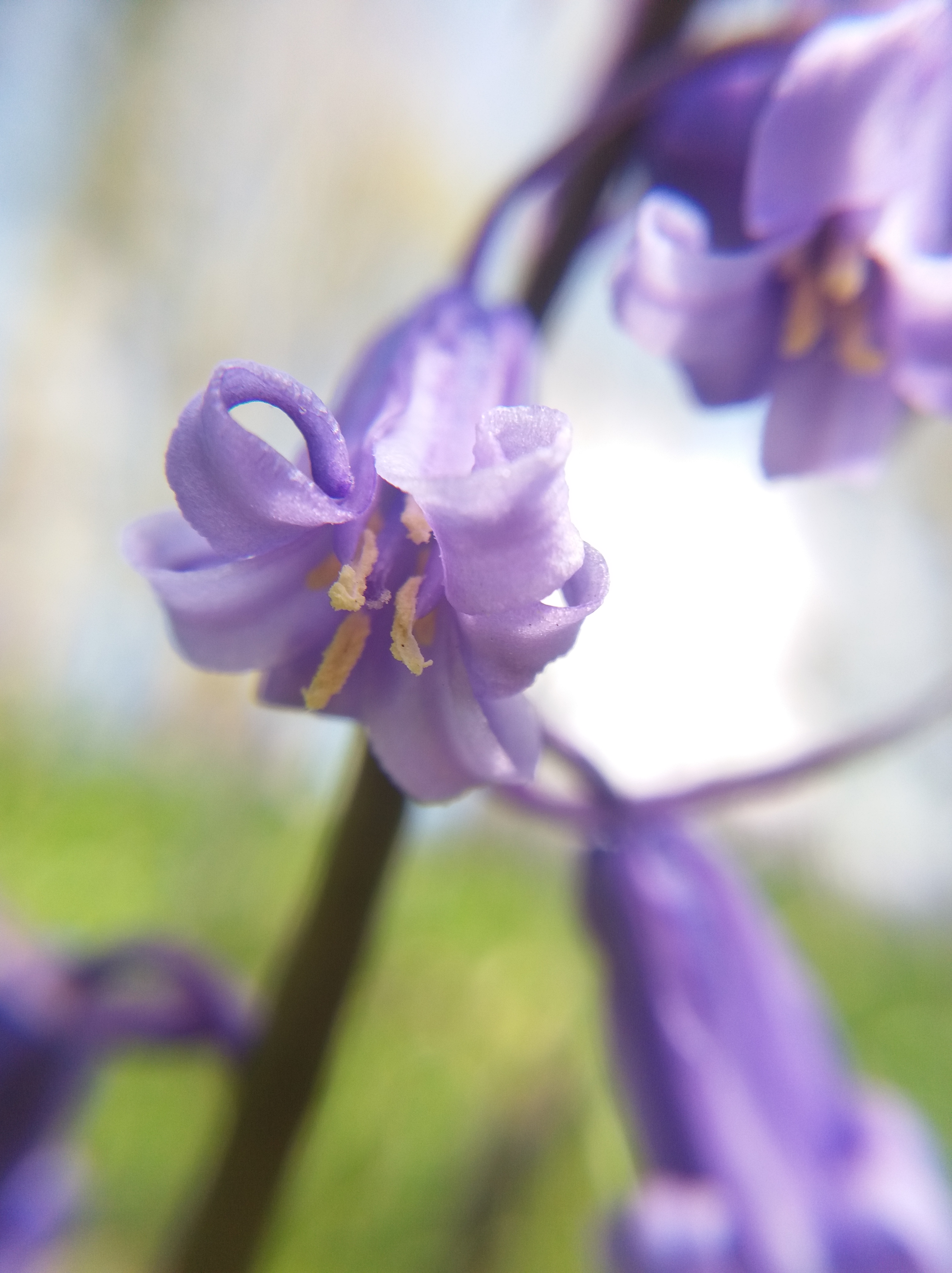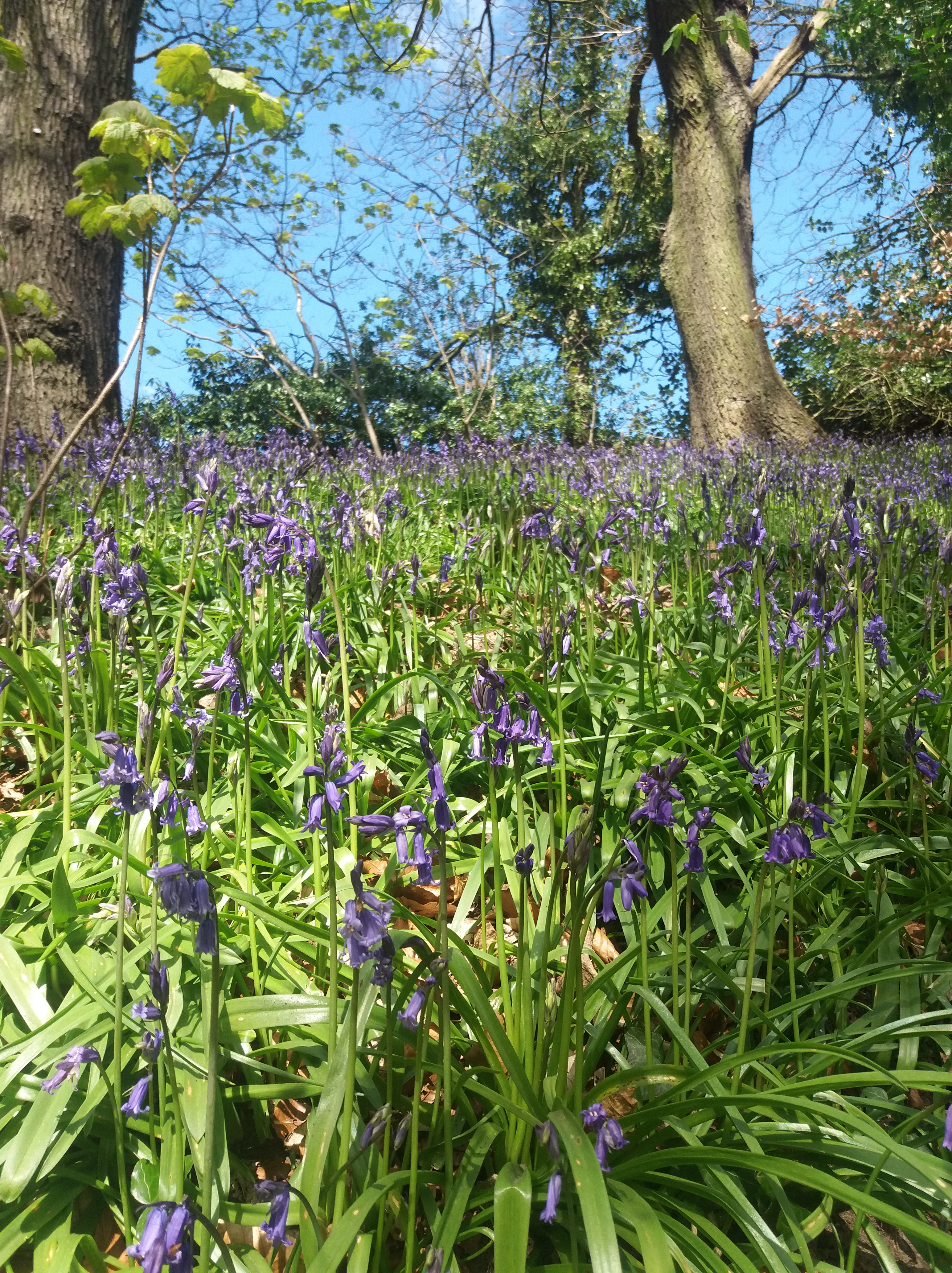 Closing the creaky gate and walking down the little bank, the woodland floor opened into a sea of lilac-y blue and I was greeted by the sound of birds who have travelled thousands of miles to be in this very wood. Blackcaps, Willow Warblers with their gorgeous songs (a sure sign of spring) are a tonic to the blues. You can just about see fluffy white clouds and the blue sky through the expanding canopy.
